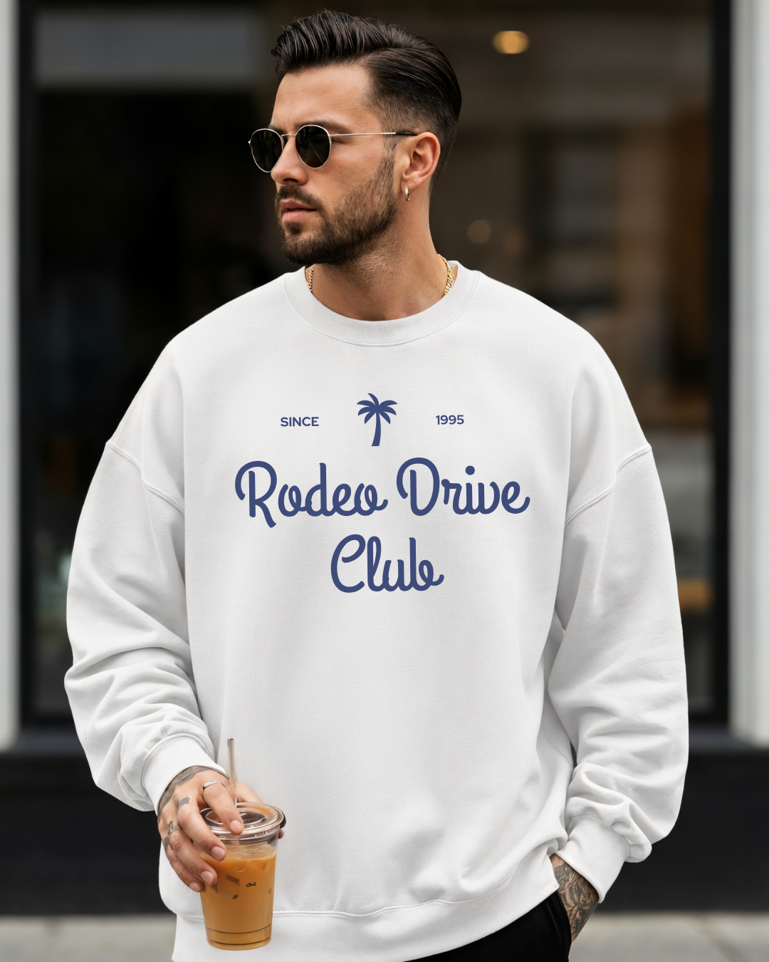 The Rodeo Drive Club sweatshirt is a minimalist unisex crewneck inspired by Beverly Hills style, high-end shopping streets, and California luxury living. Featuring clean typography, this Rodeo Drive sweatshirt blends cozy comfort with upscale streetwear energy.